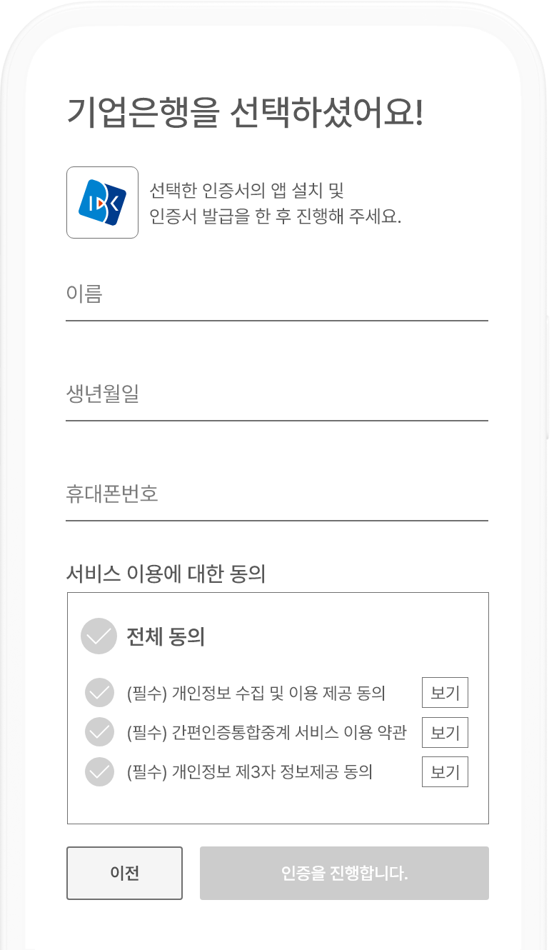 1인증서비스 선택