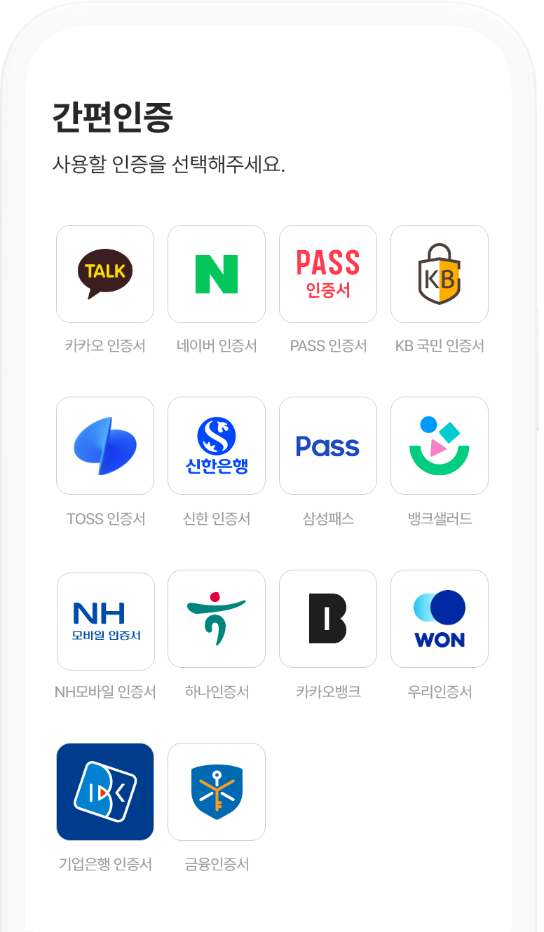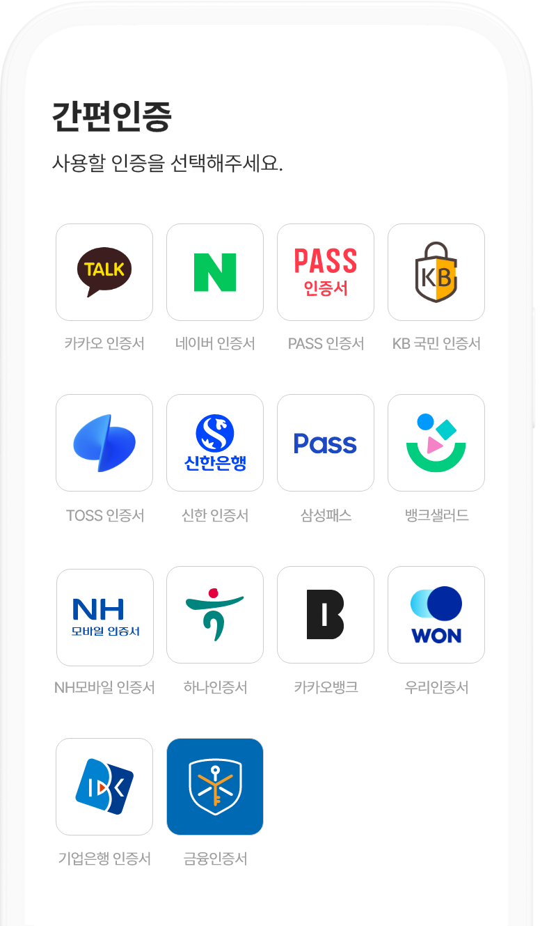 1인증서비스 선택